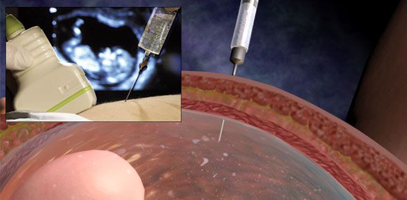 AMNIOCENTEZA – je metoda aspiracije plodove vode transabdominalnom punkcijom amnionske duplje u drugom trimestru trudnoće. To je najstariji dijagnostički postupak u antenatalnoj dijagnostici koji je uveden u kliničku praksu 1966 god.